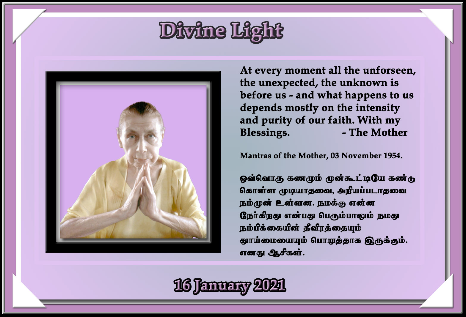 DIVINE LIGHT 16 JANUARY 2021