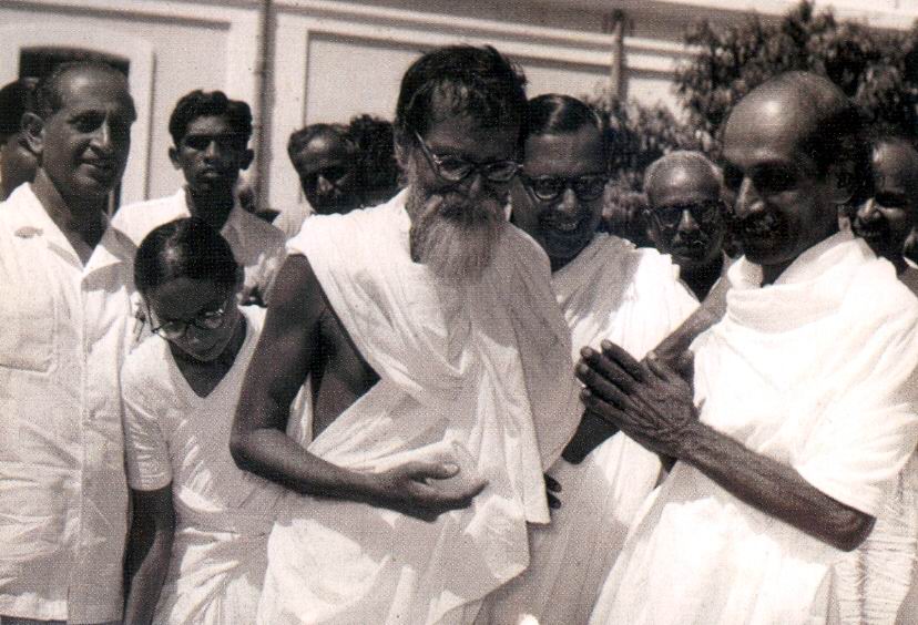 Nolini Kanta Gupta with Vinoba Bhave, Udar Pinto, Madhav Pandit and Indra Sen (August 1956).